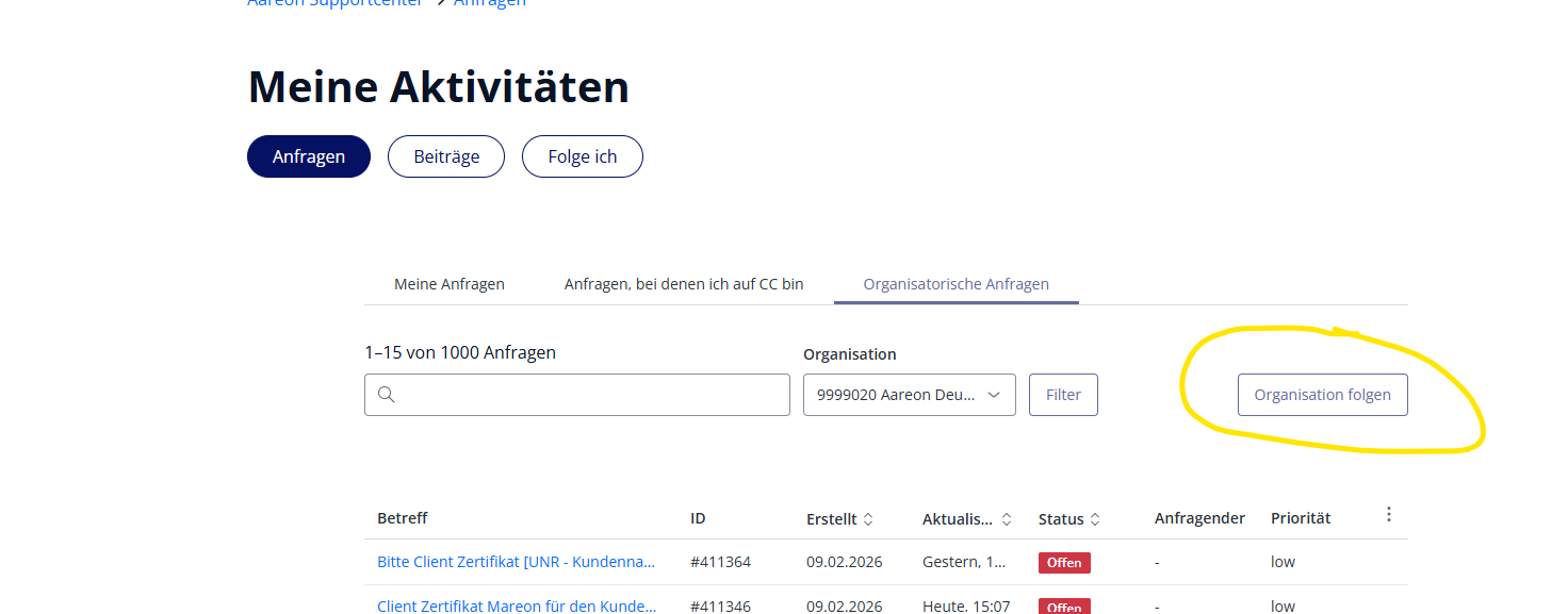 Mit der Zugriffs Berechtigung alle Tickets der Organisation sehen zu können, habe ich die Möglichkeit meiner Organisation zu folgen.