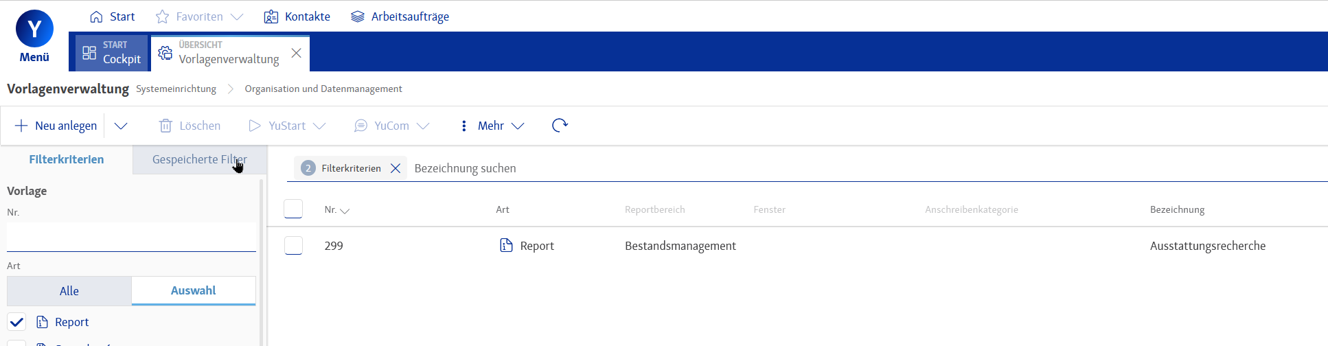 Wo kann ich Vorlagen für die Ausstattungsrecherche anlegen.