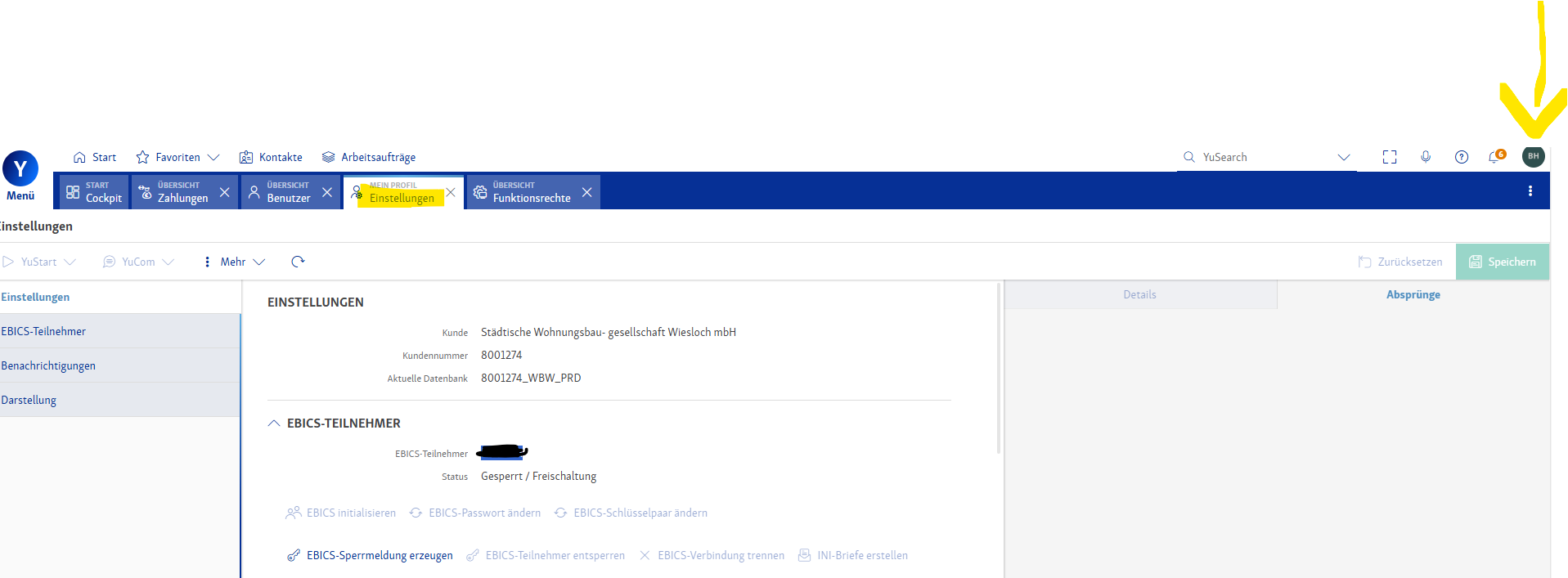 Unter "meinen Einstellungen" kann man den Benutzer als EBICS Teilnehmer anlegen.