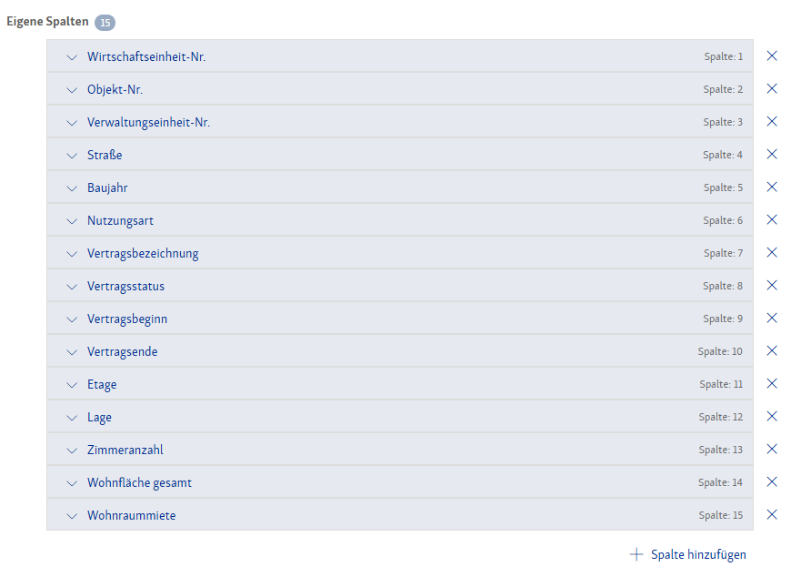 Nicht mit der Spaltenauswahl verausgaben, nur die Selektion im erweiterten Filter machen. Ausgabe dann via YuStart - Mietvertragsberichte - Mieterdaten kompakt (oder eine der verwandten Vorlagen).