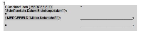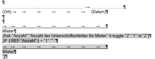 Alternativ: automatisiert über eine IF Abfrage für die Anzahl der Mieter über das Mergefeld Bewohner.Anzahl( z.B. -Wenn 2 Bewohner: 2 Unterschriftenfelder, wenn mehr als zwei Bewohner drei Felder) - Aber das ist natürlich fehleranfälliger, da Bewohner nicht gleich Mieter ist.